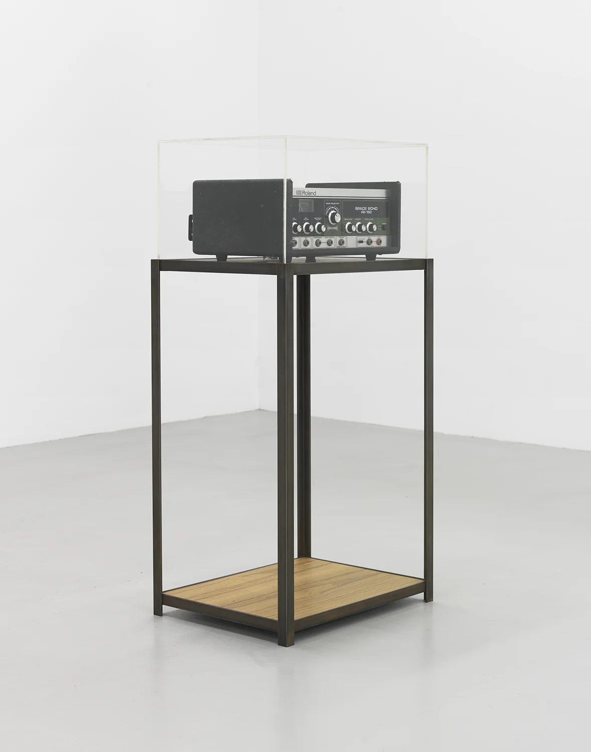 RE-150 Roland Space Echo with modified plexiglass housing on pedestal